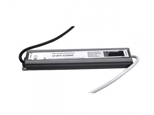 Герметичный блок питания WTF-D12-040 с мощностью 40 Вт поможет вам подключить светодиодную ленту с напряжением 12V к обычной электросети (220V). У данного блока питания для ленты есть металлический корпус, который защищает блок от внешних повреждений и влаги. Поэтому вы спокойно можете использовать данный блок бесперебойного питания на улице или в помещении с повышенной влажностью (например, в ванной комнате).
