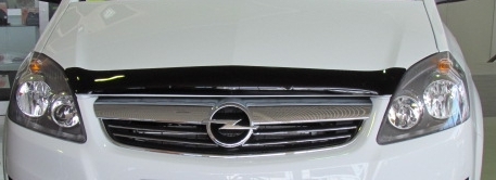 Дефлектор капота для Opel Zafira B — это щиток из орг.стекла темного цвета, который крепится на переднюю часть капота. Благодаря тому, что дефлектор разработан специально для Opel Zafira B от 2006 г.в., устанавливается он легко и быстро, при этом сверлить кузов вам не нужно. По форме же накладка полностью повторяет контуры капота. Данная модель прочна и долговечна: она надежно крепится, не боится коррозии, экстремальных температур и серьезных перегрузок.