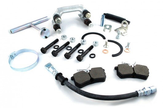 Комплект соединяется со штатной гидравлической системой и штатными тросами стояночной тормозной системы (ручником).
