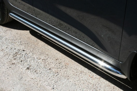 Пороги на Hyundai ix35 – это боковые подножки из нержавеющей стали диаметром 60 мм, которые позволяют более комфортно входить и выходить из салона автомобиля. Подножки Hyundai ix35 очень прочные, надежные и долговечные: они не боятся коррозии, сколов и царапин и выдерживают большие нагрузки.