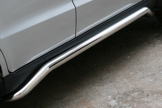 Пороги на Hyundai Santa Fe – это боковые подножки из нержавеющей стали диаметром 60 мм, которые позволяют более комфортно входить и выходить из салона автомобиля. Подножки Hyundai Santa Fe очень прочные, надежные и долговечные: они не боятся коррозии, сколов и царапин и выдерживают большие нагрузки.