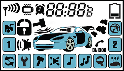 Антенна расположена в брелоках скрытно. Это значительно упрощает пользование прибором. Все пиктограммы на ЖК-дисплее на русском языке, а подсветка позволяет рассмотреть всю необходимую информацию в темное время суток.