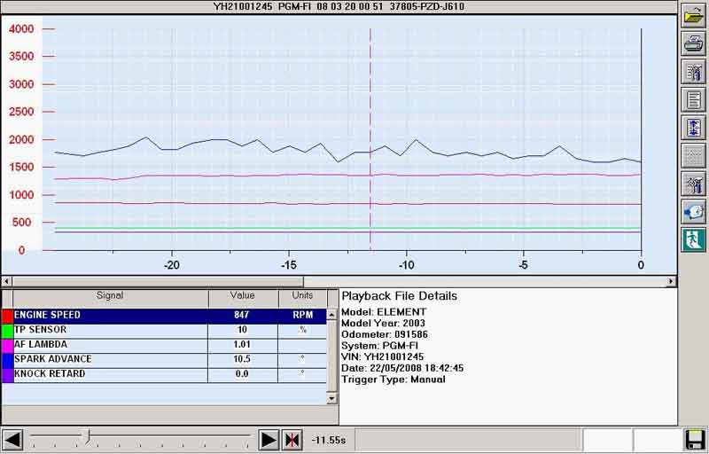 Параметры различных автомобильных датчиков выводятся на экран в режиме реального времени (как в цифровой, так и в графической форме). Это