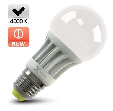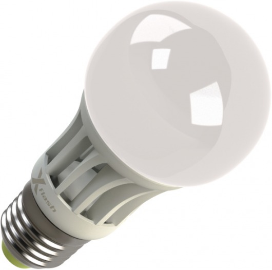 Светодиодная лампа X-Flash Globe E27 8W — лампа общего освещения. Колба лампы шарообразной формы типа "Globe", матовая. Лампа имеет уникальный радиатор с открытой структурой, который способствует эффективному рассеиванию тепла и снижению температуры внутри лампы, тем самым увеличивается срок службы лампы. Данная модель рассчитана на напряжение 220 В. Мощность диодной лампы X-Flash — 8 Вт., яркость — 720 Лм, а температура свечения  4000 K (это нейтральный  белый свет).