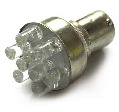 Автомобильная двухконтактная светодиодная лампа на базе 9 Led светодиодов - это высокая яркость и холодный белый цвет свечения. Лампа отличается долгим сроком службы и стабильностью работы в любых условиях. Такая лампа устанавливается в габариты, подсветку номера, дверную подсветку - туда, куда позволяет цоколь P21. Превосходно сочетается с установленным ксеноновым светом. Кроме того, Вы сможете заменить надоевшие лампы с жёлтым светом.
