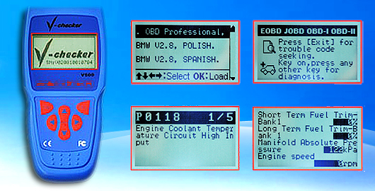 V-Checker V500 — это универсальный портативный автосканер, который позволяет считывать и удалять коды неполадок из блоков автомобилей. Кроме того, вы можете просматривать данные о состоянии систем автомобиля в режиме реального времени. Небольшой размер, надежность и низкая цена, простота применения – вот главные «козыри» сканера V-Checker V500.