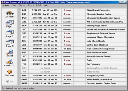 BMW Scanner V1.4.0 — это OBD2 адаптер, который позволяет проводить автодиагностику автомобилей BMW 3, 5 и 7 серий («старые» кузова), а также BMW X3, X5, Z4. Данный диагностический адаптер автоматически определяет модель, кузов, двигатель, коробку передач и комплектацию автомобиля. Поэтому вам нужно просто подключить адаптер для диагностики БМВ к авто и компьютеру, – и устройство само начнет работу.