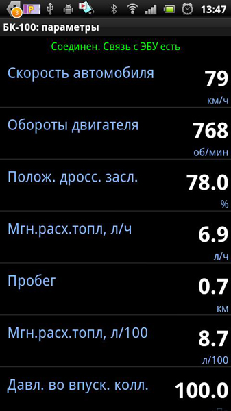 | Мгновенный расход топлива (л/100 км) |