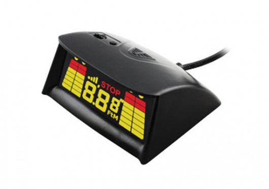 Информация от датчиков выводится на LED-дисплей, который можно закрепить на приборной панели или на потолке. Прибор не только оповестит вас о наличии преграды на пути звуковым и цветовым сигналом, но и покажет расстояние до ближайшего препятствия. Громкость звукового сигнала можно регулировать.