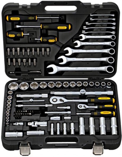 BERGER BG095-1214 — это набор инструментов в чемодане, в котором собрано 95 предметов — все самое необходимое для каждого автолюбителя. Набор инструментов для автомобиля BERGER BG095-1214 содержит следующие предметы: ключ-трещотку, торцевые и свечные головки, различные биты, комбинированные ключи, отвертки РН и шлицевые, а также многое другое, благодаря чему вы можете сделать мелкий ремонт своего авто самостоятельно. Этим вы экономите свое личное время и деньги.