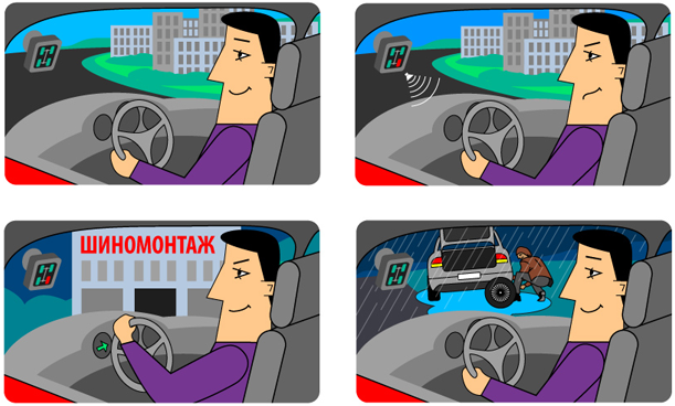Кстати, если у вас внедорожник, то один комплект датчиков предоставляется на несколько комплектов колес. Если вы работаете на разных машинах, то свой прибор остается всегда при вас, и не важно, какой машиной вы пользуетесь.