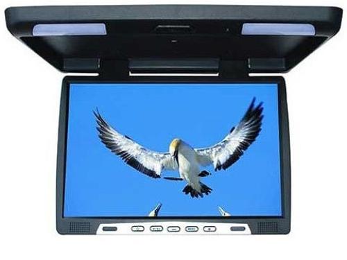 Потолочный монитор с большим размером диагонали прекрасно подойдет для установки в джипы и минивены. Корпус монитора выполнен из качественного пластика черного цвета, замечательно вписывается в интерьер автомобиля.