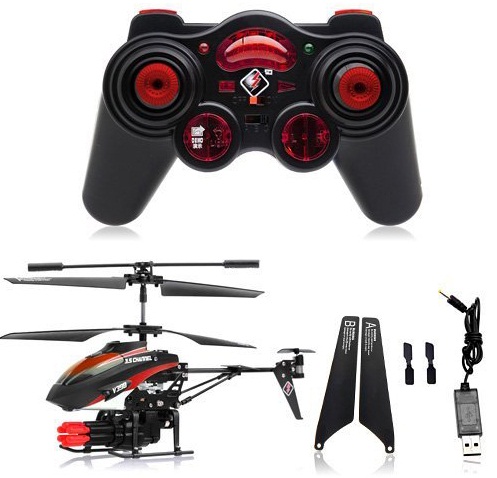 Радиоуправляемый вертолет WLtoys V398 — модель вертолета с ракетной установкой и снарядами (6 ракет). Радиус действия пульта около 10 метров. Время полета составляет, примерно, 7 минут. Вы можете стрелять одиночными выстрелами и очередями. Конструкция вертолета на радиоуправлении легкая и позволяет при авариях избегать повреждений.
