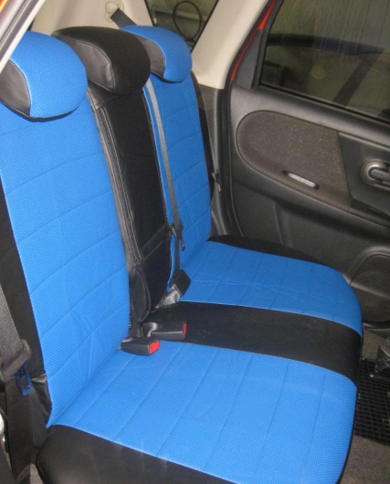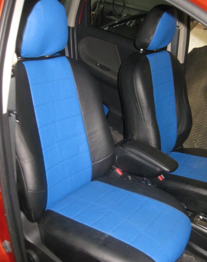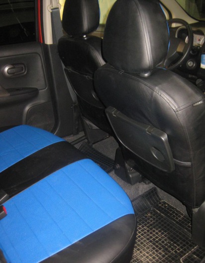 Вопросы и отзывы про Чехлы автомобильные для Nissan Note (черно-синие, экокожа)
