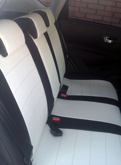Вопросы и отзывы про Чехлы автомобильные для Nissan Qashqai, 5 мест (черно-белые, экокожа)