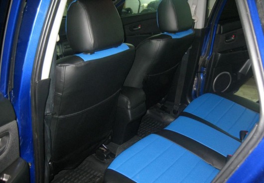 Вопросы и отзывы про Чехлы автомобильные для Mazda CX-7 (черно-синие, экокожа)