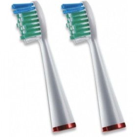 Стандартные насадки (2SRB-2W) для зубной щетки Waterpik SR-3000 Sensonic Professional Plus состоят из закругленных на конце щетинок, которые не царапают эмаль, бережно и тщательно удаляют налет. Насадки  не только очищают  налет, но и удаляют бактерии из труднодоступных мест за счет удлиненных щетинок.