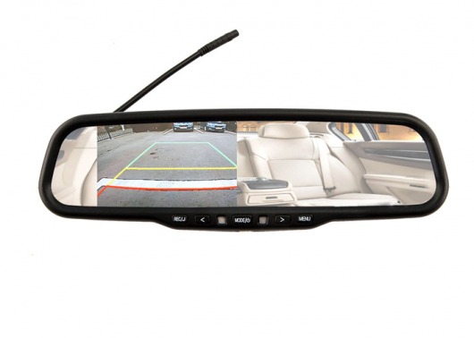 Для удобной парковки к зеркалу с видеорегистратором и монитором можно подключить камеру заднего вида — картинка с нее будет выводиться на монитор, встроенный в зеркало. Видеовход стандарта CVBS позволит подключить к устройству любую парковочную камеру.
