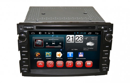Штатное головное мультимедийное устройство позволяет прослушивать аудиофайлы различных форматов, просматривать видео (в том числе в HD-формате) и фотографии как с внутренней памяти устройства (8 Гб), так и с внешних носителей и SD карт памяти. Вы также можете слушать аналоговое или интернет-радио или смотреть видео онлайн. Или подключить цифровой ТВ-тюнер, чтобы смотреть цифровые каналы прямо на экране устройства. А еще у вас есть возможность подключить DVD-привод и смотреть фильмы и управлять DVD-меню прямо с сенсорного экрана магнитолы.
