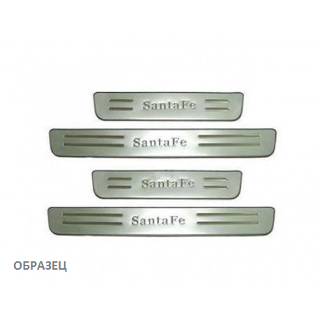Внутренняя накладка на порог Hyundai Santa Fe — это аксессуар автомобильного тюнинга, который защищает внутренний порог от механических повреждений при посадке и высадке из машины. Декоративные накладки с рисунком на внутренние пороги предназначены для автомобилей Hyundai Santa Fe от 2006 г.в.