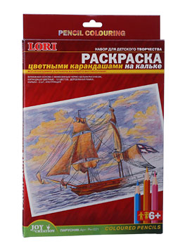Раскраска "Парусник" (бумажная основа + карандаши цветные - 12 цветов, деревянная рамка, калька - 2 шт.)
