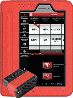 Launch X431 Pro (Launch X431V) – это разработка компании Launch для диагностики автомобилей. Автосканер работает под управлением ОС Android и представляет собой планшет с сенсорным экраном. Поддерживает работу с большинством существующих марок автомобилей. Диагностический комплект состоит из модуля DBSCar, подключаемого к разъему автомобиля, и планшета. Связь между устройствами осуществляется при помощи беспроводного интерфейса Bluetooth.
