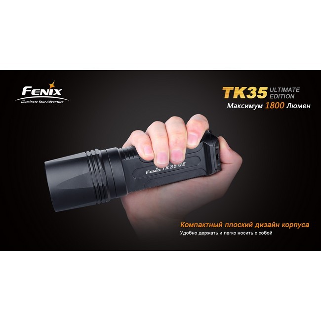 Материалом корпуса служит анодированный алюминий: прочный и стойкий к коррозии материал. К тому же, оболочка Fenix TK35 не пропускает внутрь устройства ни воду, ни пыль. Эти качества предусмотрены условиями стандарта ANSI IPX-8, которому соответствует фонарь Fenix TK35 Cree MT-G2.