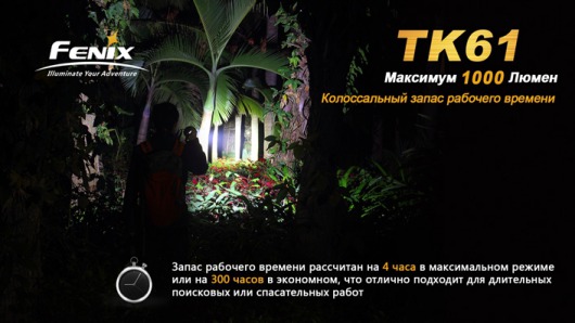 С таким набором режимов работы, Fenix TK61 Cree XM-L2 (U2) можно использовать в качестве мощного поискового прибора, фонаря для таможенных, охранных и дорожных служб. Его потенциала более чем достаточно для туристических и охотничьих целей.