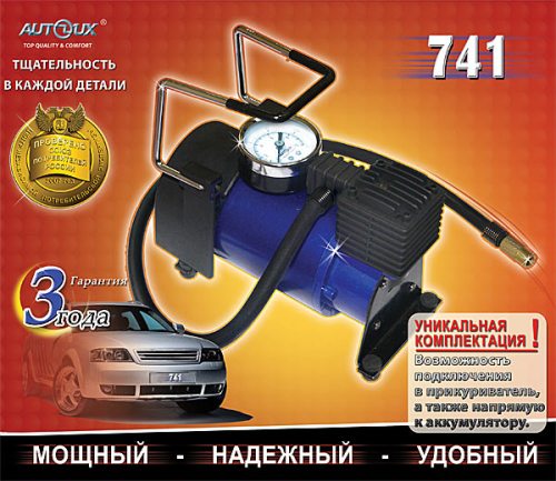 Автомобильный компрессор 741 - превосходная модель американских разработчиков, которая обладает действительно поразительной производительностью, мощностью, надежностью и безотказностью в работе. Компрессор прост в установке и эксплуатации. Использовать Вы его можете как для накачки шин, так и лодок и матрасов. Небольшой в размерах, он легко транспортируется и не занимает много места.