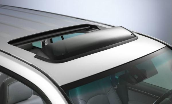 Дефлектор люка - пластиковый щиток, который располагается на крыше автомобиля перед сдвижным люком. Служит для создания аэродинамической тени над люком автомобиля путем смещения воздушного потока. Препятствует попаданию осадков в салон через открытый люк, снижает уровень шума и улучшает вентиляцию салона.