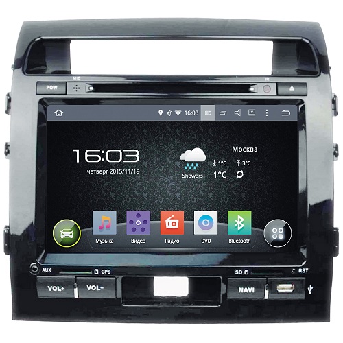 Мультимедийная автомагнитола InCar AHR-2280 предназначена для установки в штатное место Toyota Land Cruiser 200 без использования переходной рамки, с сохранением родного дизайна торпедо. Магнитола имеет максимум наворотов, встроенный Bluetooth для разговора по телефону «без рук», возможность подключения камеры заднего вида. Интерфейс выполнен на системе Android. Есть встроенная навигация Навител с поддержкой пробок.