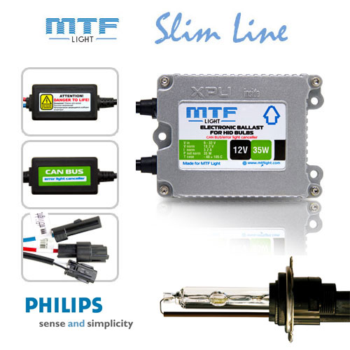 Ксенон MTF Slim line XPU Philips H7 4300K с «обманкой» поможет вам осветить дорогу в любых условиях, не ослепляя. Блоки розжига оснащены специальными микрочипами XPU. Эта особенность увеличивает работу оборудования. «Обманки», встроенные в блоки, позволяют обойти проверку бортовым компьютером. Также в наборе идут две лампы Philips. Они разительно отличаются от обычных характеристиками света. У ксеноновых ламп Филипс превосходные показатели яркости, при этом свет не ослепляющий.