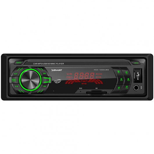 Автомобильная магнитола 1din Swat MEX-1005UBG – недорогое, но функциональное утройство. У MEX-1005UBG есть широкий набор мультимедийных технологий, которые позволяют выжать из устройства по максимуму. Ресивер способен выдавать звук на 4 колонки по 50 ватт. Есть возможность сохранения до 18 радиостанций на цифровом радио-тюнере. Кроме того, реализована возможность прослушивания аудиозаписей через карту памяти.