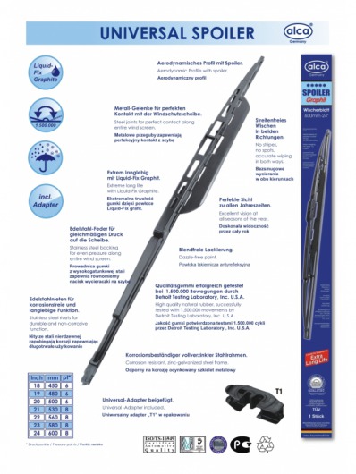 ALCA 23"/58 см для автомобилей – это каркасная щетка стеклоочистителя длиной 58 см (23 дюймов) со спойлером, которая предназначена для очистки стекол легковых автомобилей и микроавтобусов любых производителей. Но вам нужно знать необходимую длину, которая подходит для стекла именно вашего автомобиля.