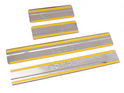 Накладки на металлические пороги дверей Форд Фокус 2 с логотипом авто не только обеспечивают защиту верхней и боковой поверхности внутреннего порога, но и отлично вписываются в интерьер автомобиля, подчеркивая его стиль и индивидуальность. C монтажом проблем не возникнет: установка накладок на внутренний порог для Ford Focus 2 производится на штатные места с помощью скотча 3M.