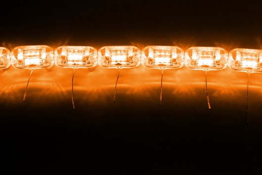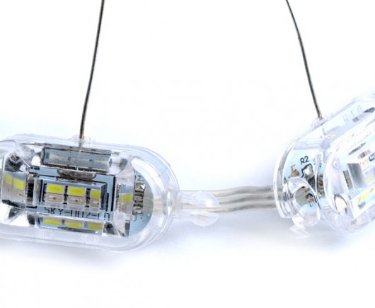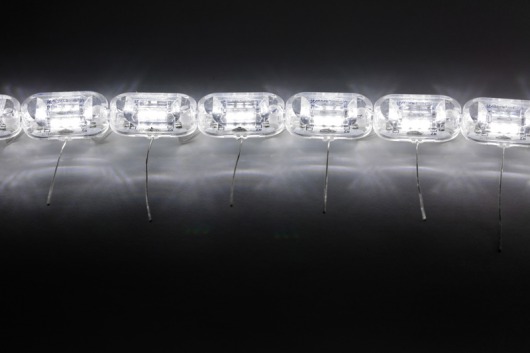 Ходовые огни выполнены в форме овальных модулей, соединенных между собой проводами в цепочке на каждую сторону по 16 модулей
