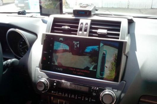 ШГУ для Тойота LC Прадо поддерживает систему кругового обзора, штатного усилителя и кнопок на руле.