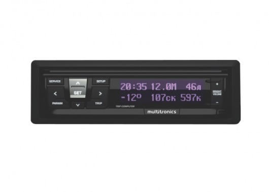 Multitronics RI-500V — это новый мощный маршрутный компьютер, который устанавливается на отечественные автомобили производства ВАЗ, ГАЗ и УАЗ (список поддерживаемых ЭБУ см. ниже), подключается к диагностическому (OBD-2) разъему. Прибор универсален для установки, ведь он работает как с блоками управления  различных машин, так и напрямую от датчика скорости и форсунки (для этого требуется опциональный кабель). Разместить компьютер можно как в отсек для мелочей (для Лада-Приора), так и в стандартный отсек для магнитолы (DIN место), который есть практически у всех отечественных автомобилей.