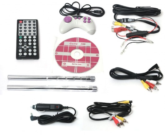 Если у вас есть дети, то они могут быть заняты не только просмотром мультфильмов, даже и видеоиграми, поскольку в комплект поставки входит диск с 300-ми играми и проводной джойстик.
