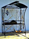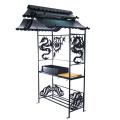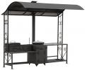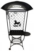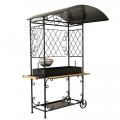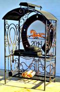 Дополнительно в комплекте: вертел, чугунный казан на 8 л, решетка для гриля, подставка под сковороду, нажигатель для дров, дровница, колчан для шампуров, 2 деревянных разделочных столика, полка для посуды